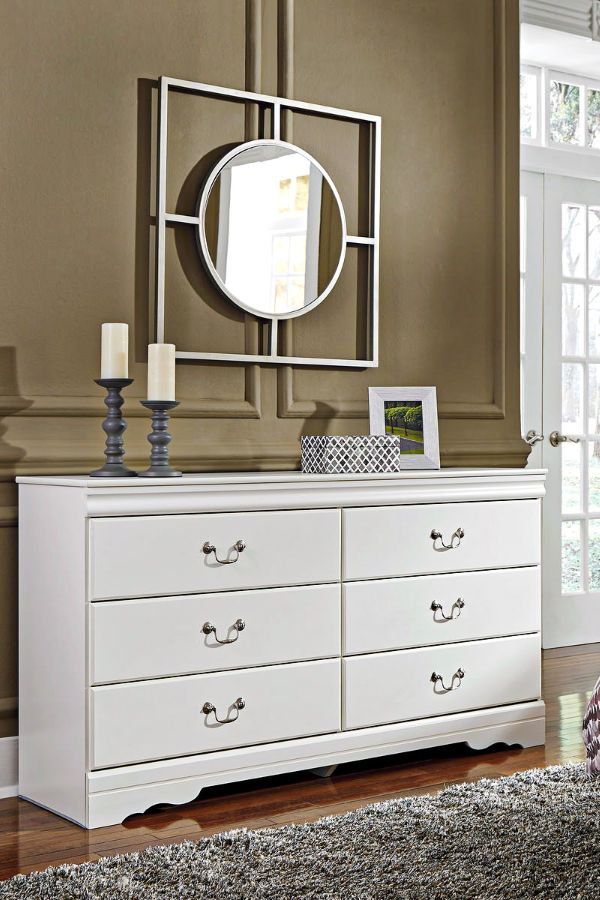 Your dresser needs something big on the wall above to provide visual balance. If the dresser is positioned under a window, the job is already done. Otherwise, hang a large mirror, a single work of art or a collection of small pieces on the wall above the dresser. For a better look, your mirror or hanging work should be at least half the width of the top of the dresser, but not wider than the dresser itself.